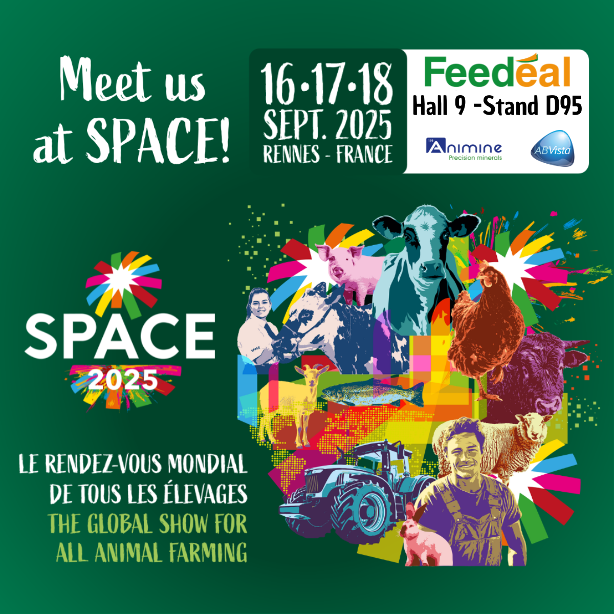 Once again this year, Feedéal is pleased to welcome you to Hall 9, Stand D95, a space we will share with our partners AB Vista and Animine. We will also represent several of our trusted international partners: